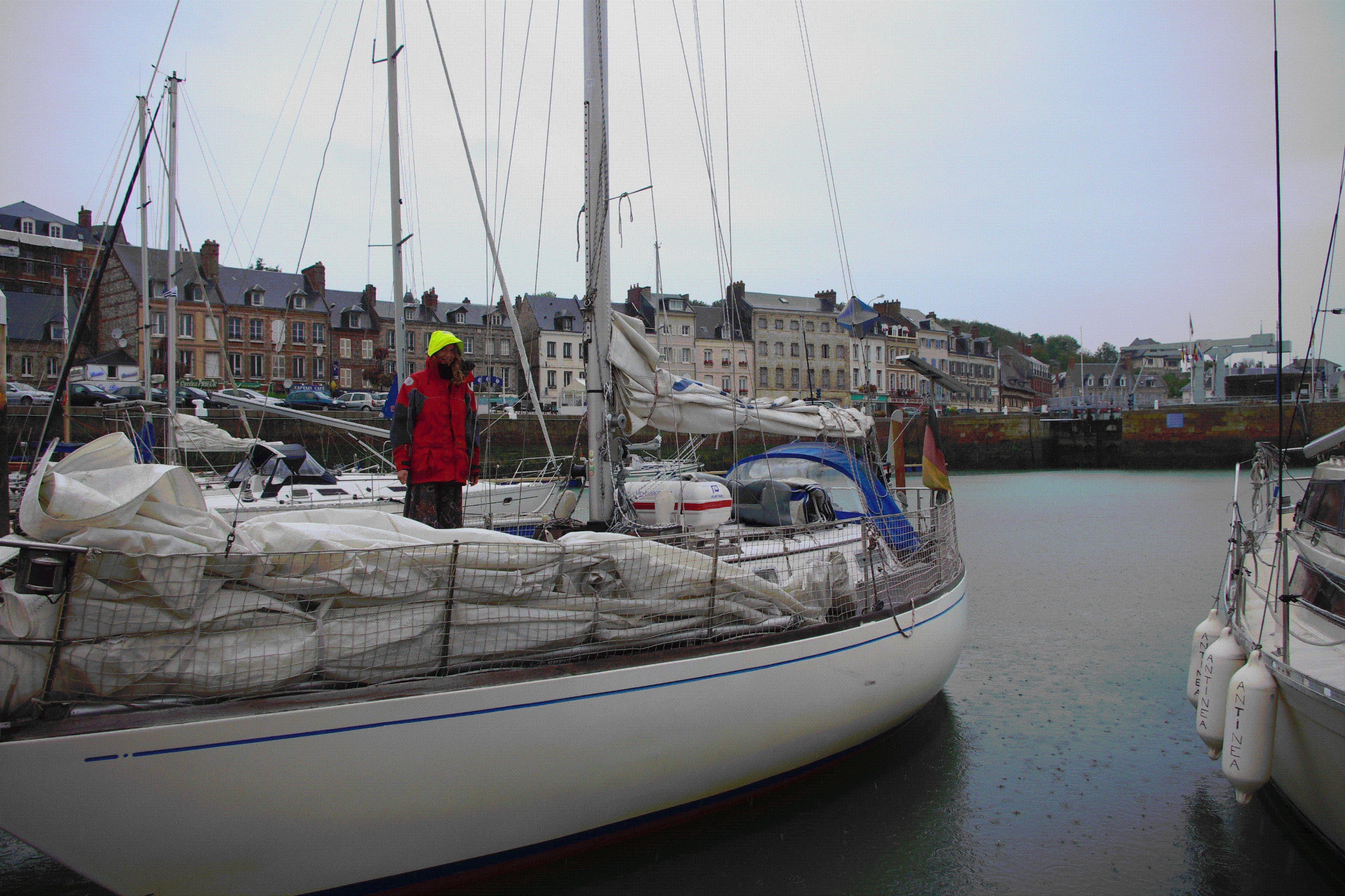 So sind wir bei Sonnenschein und moderatem Wind von Calais gestartet um nach Le Treport zu segeln. Leider ist der Wind später so schwach gewesen, dass wir in den besagten Hafen nicht mehr hineinkamen, wegen des Wasserstandes. Wir entschieden uns weiter nach St.Valery en caux zu fahren (mit Motor), wo wir um 3:30 Uhr ankamen. Am heutigen Samstag nach dem Aufstehen begann es zu regnen und ab morgen soll es Wind geben. So werden wir in diesem kleinen Örtchen mal ein paar Tage bleiben und abwettern. Heute Abend gibts frischen Fisch, gekauft direkt auf dem Fischmarkt.